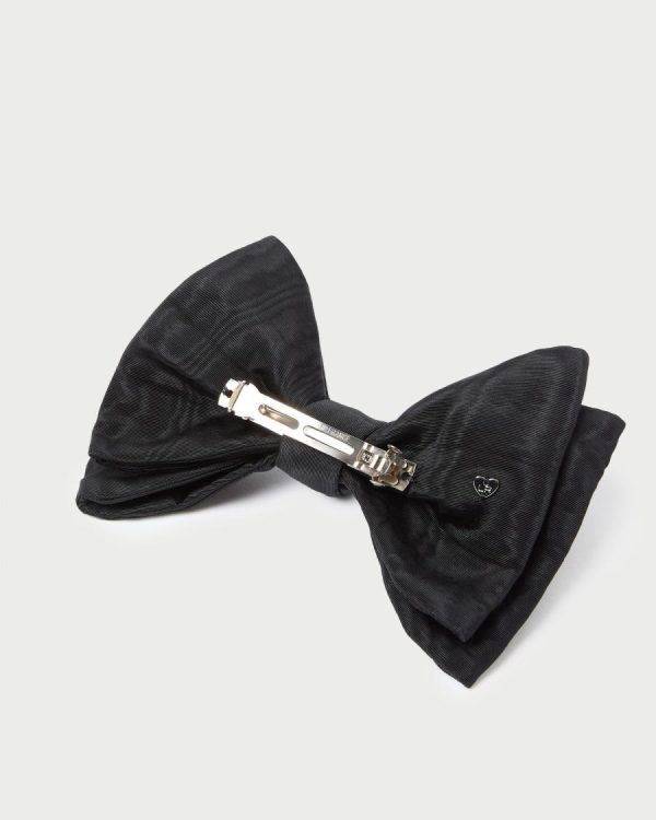 Hair clip with a statement bow in black moiré.