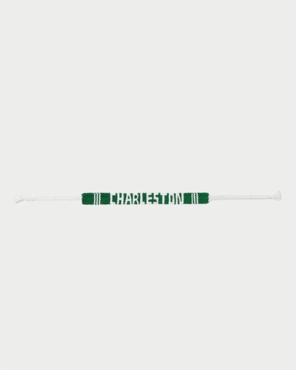 Hand-woven bracelet featuring an LR-exclusive “Charleston” design in green and white. Made by Mayan Hands.