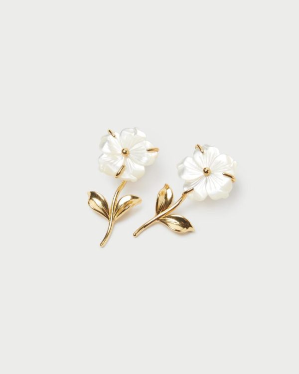 Earrings in gold-plated brass featuring a flower design in semi-precious pearl.